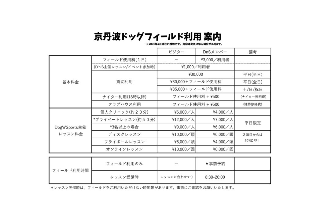 <料金>1人 ビジター¥12,000/Dog’n’Hubメンバー ¥7,000