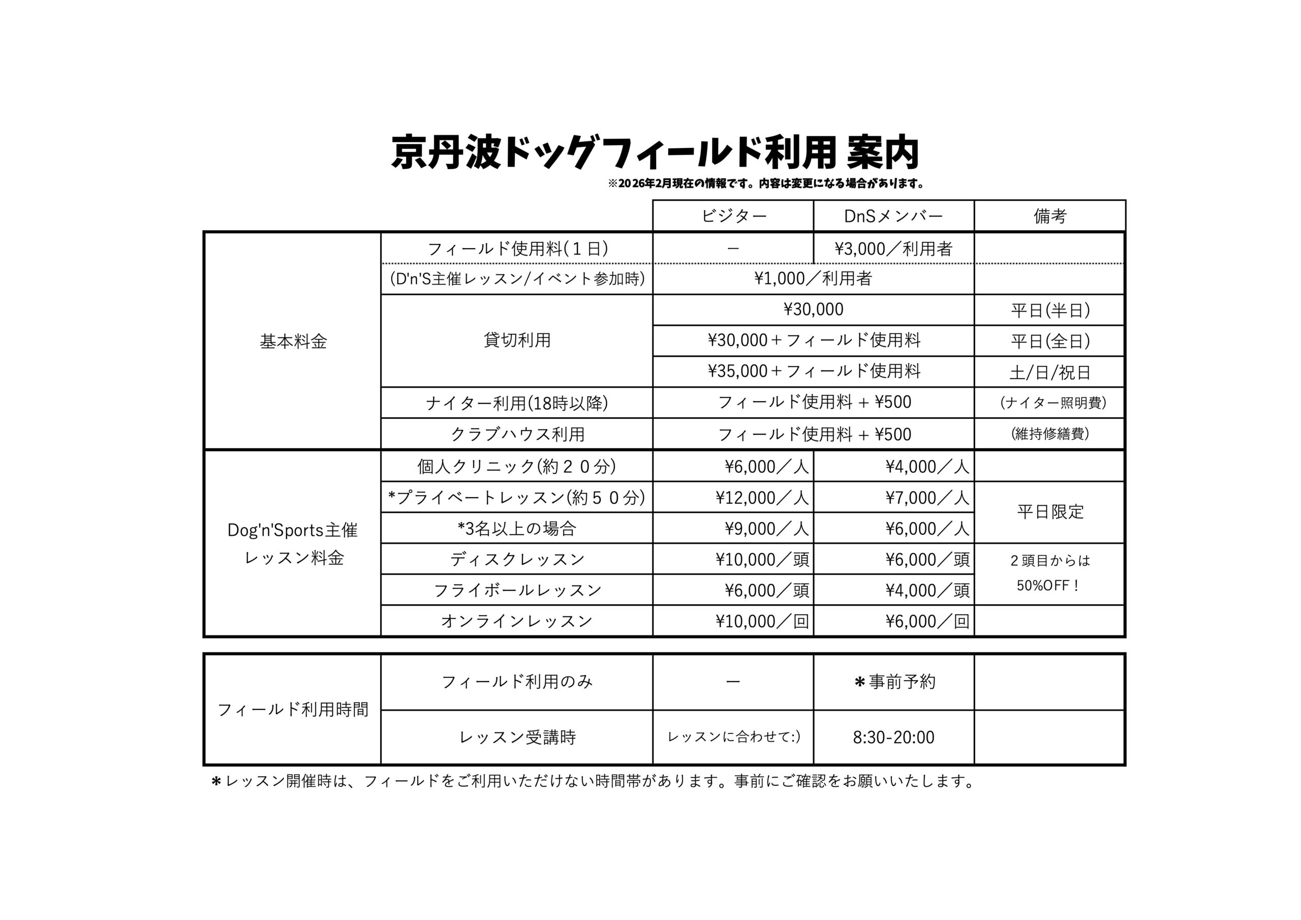 <料金>1人 ビジター¥12,000/Dog’n’Hubメンバー ¥7,000